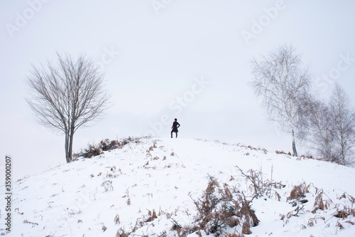 selective focus, tree, winter, snow, landscape, nature, cold, white, field, frost, sky, season, fog, lonely, snowy, black, alone, glacé, tree branch, winter scene, beautiful day, activity, scenery, solitude, osmosis, single, countryside, lifestyle, adventure, peaceful, quiet, weather, connection