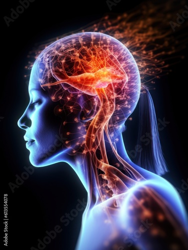 android, head, scan, brain, woman, anatomy, thought, body, x-ray, abstract, x-ray, skull, spine, bone, black, three-dimensional, skeleton, science, shape, light, joint, blue, red, ai, generated, human, illustration, biology, medicals, medicine, neck, profile, face, art, lady, concept, mind, anatomical, organ, pain