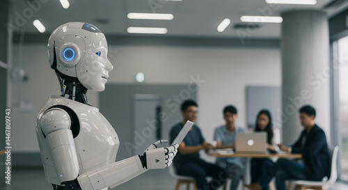 robot, technology, office, teamwork, innovation, interaction, future, android, artificial intelligence, automation, communication, collaboration, design, workspace, digital, working, productivity, engagement, creative, meeting, research, development, modern, science, concept, education, business, assistance, coding, study, evaluation, professionalism, aesthetic, advanced, humanlike, support, idea, datum, tech, futuristic, efficiency, friendly, emotion