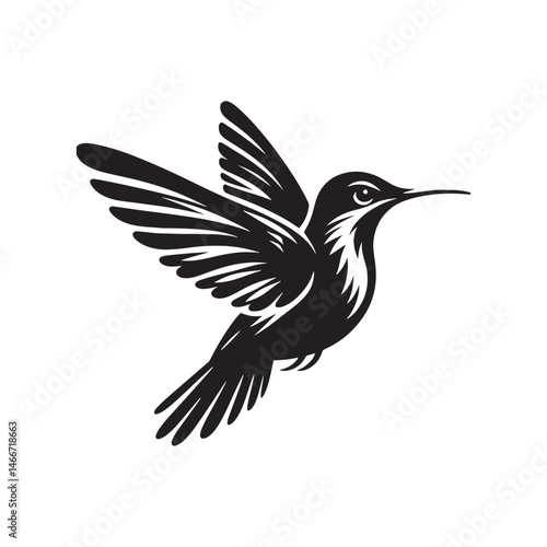 Hummingbird Vector Silhouette, Elegant Avian Design, Delicate Wings in Motion, Nature-Inspired Bird Art, Tiny Bird Illustration, Flying Jewel.