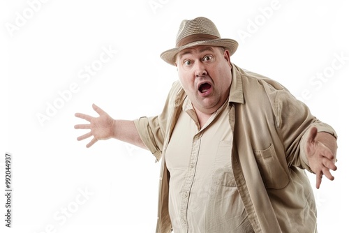 Humorous fat man exercising to lose weight, funny weight loss concept.
