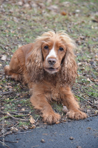 dog, spaniel, cocker, animal, pet, cocker spaniel, mammal, purebred, brown, portrait, looking, sweet, fur, red, meadow, cute, upright format