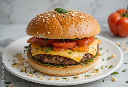 burger, hamburger, food, bread, meal, tomatoes, bun