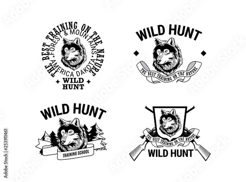 animal, icon, vector, wolf, symbol, club, hunter, emblem, design, wildlife, nature, wild, element, badge, isolated, trophy, graphic, signs, logotype, hunt, head, gun, forest, team, illustration, strength, adventure, muzzle, predator, label, sport, prey, husky, outfit, season, timber, hunting, crest, shape, vintage