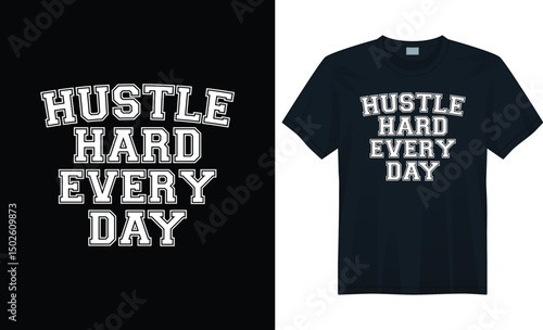 HUSTLE HARD EVERY DAY – Vintage Varsity Typography T-shirt Design, hustle, hard, every day, t-shirt, design, vintage, varsity, typography, motivational, sports, bold, quote, lettering, graphic, appare
