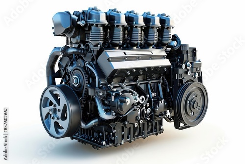 Hybrid car engine, modern vehicle tech, 3D realistic, isolated on white background