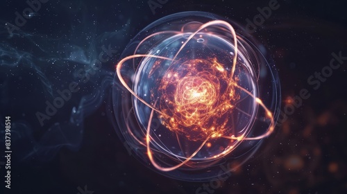 hydrogen, atom, fundamental, universe, glowing, sphere, concentric, ring, electron, dark, expansive, space, mystery, cosmos, science, astronomy, structure, representation