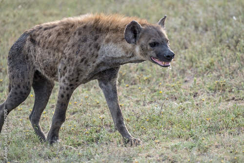 hyena on grass, Kruger park, South Africa