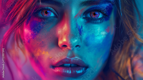 woman, face, neon, model, closeup, cute, fashion, adult, closeup, portrait, beautiful, young, girl, beauty, attractive, female, person, healthy, natural, skin, pretty, background, studio, people, clean, care