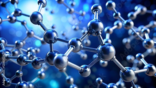 Hyper-Realistic Molecular Bonds with Transparent Spheres and Glowing Connections on a Light Blue Gradient Background