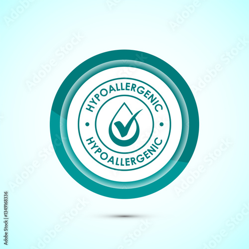 Hypoallergenic tested icon design illustration. Cosmetic certification label, Hypoallergenic icon sign, Teal color button design