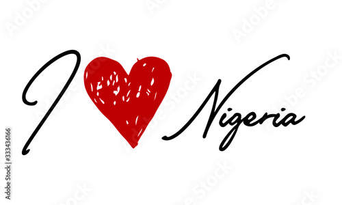 I love Nigeria Red Heart and Creative Cursive handwritten lettering on white background.