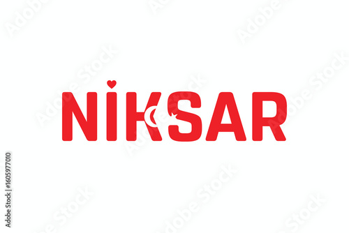 I Love NIKSAR, Typographic Design of I Love NIKSAR on a white background, Flag Typography of NIKSAR with heart, Vector design of I Love Turkey
