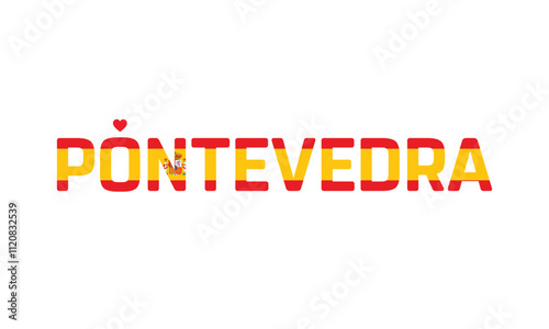 I Love Pontevedra, Typographic Design of I Love Pontevedra with a flag of Spain on a white background, Flag of Spain corporate in Pontevedra with heart, Pontevedra, I love Spain