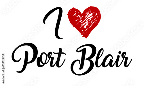 I Love Port Blair red heart and Creative Cursive Typographic Template.