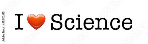 I Love Science, sign illustration, font type letters with heart symbol. Ideal for print poster, card, shirt, mug