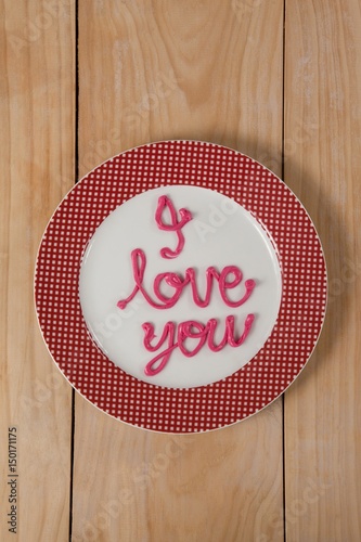 love, valentine, written, cream, plate, pink, text, you, wooden, surface, communication, celebration, traditional, temptation, freshness, calorie, romance, message, table, nubes, with, on