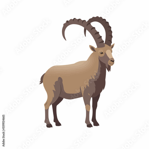 ibex, animal, goat, standing, illustration, horned, brown, wildlife, natural, herbivore, mammal, fauna, nature, isolated, graphic, character, cartoon, design, cute, creative, domestic, mountainous, grazing, ecosystem, habitat, wilderness, icon, symbol, representation, ecology, majestic, agile, strong, outdoors, playful, rustic, environment