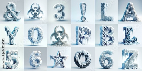 art, generative, generated, illustration, ai, typeset, typography, letter, lettering, typeface, typographic, letter, type, alphabet, font, text, character, rudiments, icy, snowy, melting, iceberg, snowfall, christmas, snowflake, typescript, seasonal, collection, creative, snow, ice, winter, cold, style, signs, frost, blue, symbol, graphic, cool, design, set, three-dimensional, glacé, season, white, poster