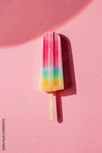 Ice cream popsicle on pastel pink background. Simple composition for summer.