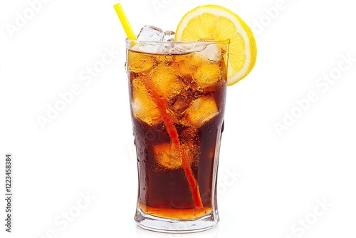 glasses, drink, cola, ice, cold, beverage, soda, cocktail, isolated, alcohol, liquid, white, cool, refreshment, whiskey, tea, brown, rum, fresh, coke, lemon, bar, object, food, bubble