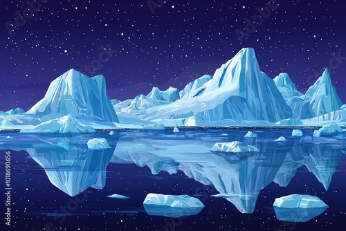 iceberg, ice, water, ocean, sea, sky, night, star, starry, dark, blue, cold, glacé, arctic, antarctica, landscape, nature, huge, peaceful, tranquil, serene, calm, majestic, abstract, minimal, illustration, digital, art, graphic, design, pattern, geometric, background, wallpaper