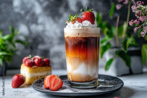 iced, hot drink, whipped, cream, strawberry, dessert, drink, beverage, cafes, delicious, sweet, tasty, refreshing, summer, cold, eatery, food, photo, background, glasses, layered, brown, milk, sugar, cocoa, pastry, cake, strawberry, garnish, top, refreshment, treat, indulgence, creamy, frothy, chilled, aroma, tempting, visual, appealing, vibrant, colours, presentation