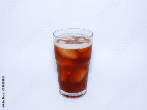 iced tea, tea, drink, beverage, glasses, ice, cube, refreshment, cold, brown, liquid, 1, single, food and drink, studio shot, white background, copy space, summer, cool, refreshing, delicious, thirst, hydratation, simple, minimal, clean, clear, still life, nobody, indoor, day, vertical, topview