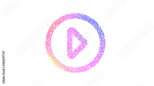 Icon caret circle right is made up of LED square shapes. There are bright diodes and there are black dead diodes