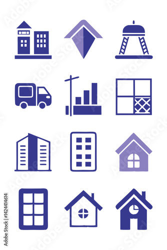 Icon Collection: Buildings, Houses, Truck, and Construction