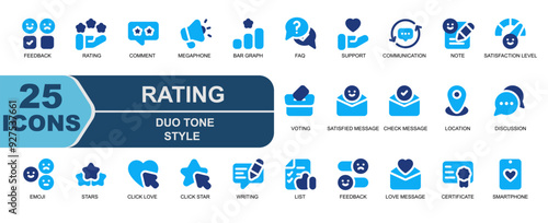 icon collection theme customer rating.style duo tone.contains like,list,check,love message,certificate,feedback,satisfaction,rating,comment,chat,star,megaphone,announcement.