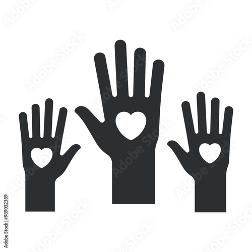 Icon hands raised with love symbols for donation awareness at a community event promoting charitable giving and support for causes