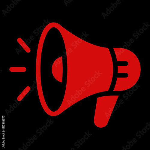 Icono de un megáfono sonando o transmitiendo un mensaje o comunicado en color rojo sobre fondo negro