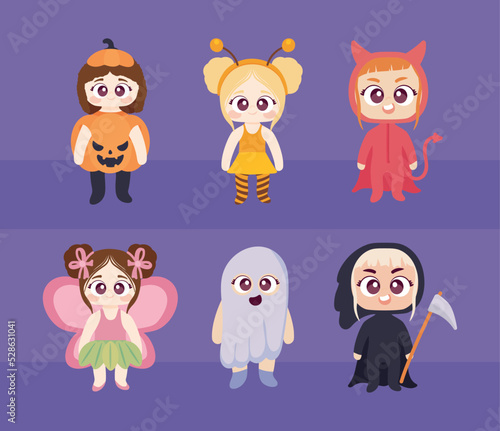 halloween, children, costume, sorcerer, bee, pumpkin, butterfly, october, horror, cartoon, decoration, ghost, autumn, skittish, trick, scarey, party, character, season, vector, illustration, design, icon, icon, set, collection