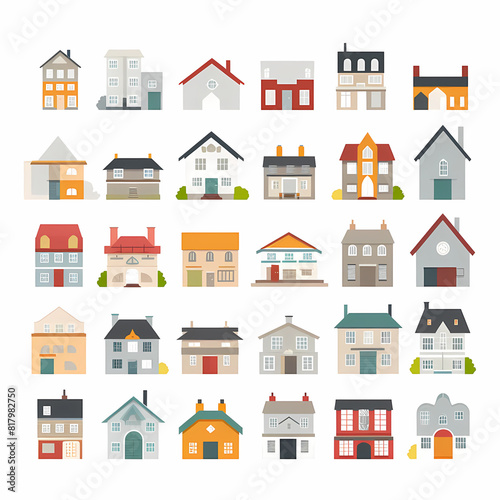 Icons of houses and buildings isolated on white. Illustration in vector format