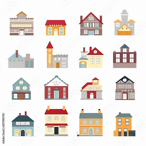 Icons of houses and buildings isolated on white. Illustration in vector format