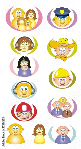 woman, fireman, men at work, executive, employee, icon, man, family, police, officer, phone, operator, secretary, cowboy