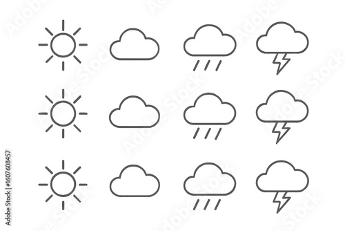 Icons set prompt minimal stroke symbol line contour weather collection grid icon