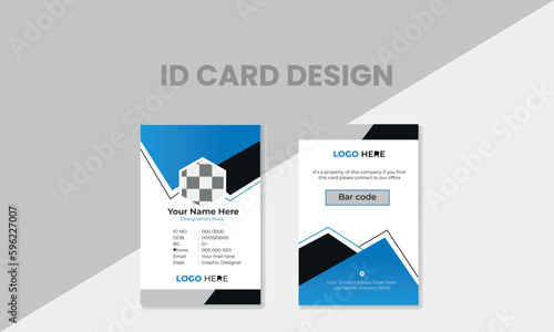 Id Card Template for Your Office Use. Abstract Simple Geometric Blue Id Card Design, Professional Identity Card Template Vector for Employee.