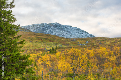 mountain, landscape, autumn, nature, forest, yellow, sweden, north, europa, idylli, snowy