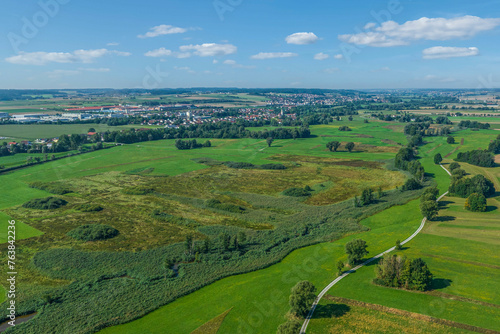 Idyllische Erholungslandschaft im niederbayerischen Vilstal am Stausee bei Marklkofen