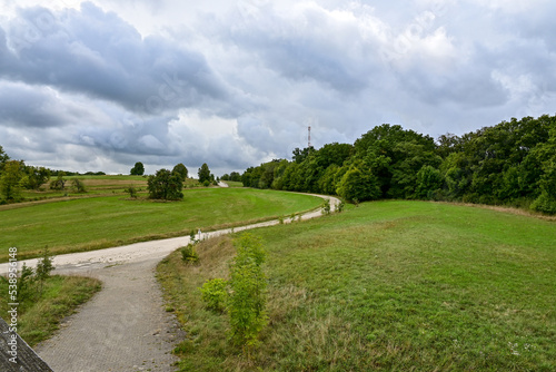 idyllischer Wanderweg durch das Naturschutzgebiet Isarleite bei Landshut in Bayern, Deutschland im Sommer