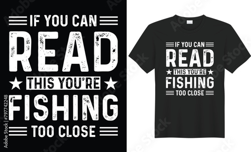 If you can read this you're fishing too close vector typography t-shirt design. Perfect for print items and bags, poster, cards, banner, Handwritten vector illustration. Isolated on black background.