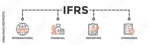 Ifrs banner web icon illustration concept for international financial reporting standards with icon of global, network, money, documents, books, and writing