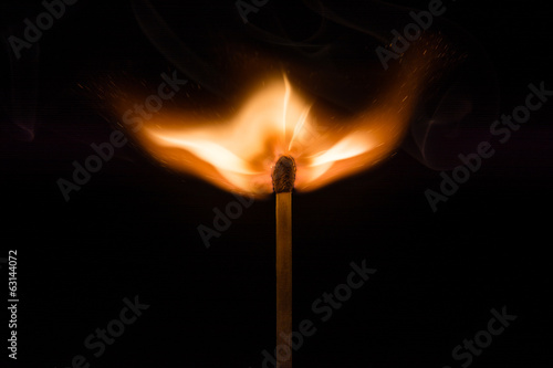 matchstick, match, ignition, single, burning, isolated, flames, background, black, black background, blaze, combustion, burn, explosion, burst, head, closeup, energy, perched, fire, flammable, 1, flare, heat, hot, illuminated, illumination, life, light, lit, orange, stick, wooden, yellow