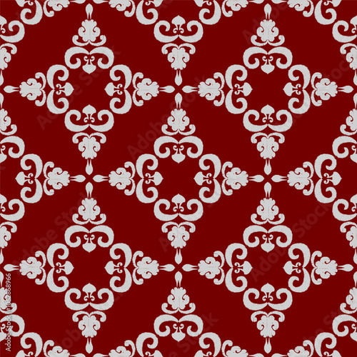 Ikat paisley embroidery on the fabric in Indonesia,India and asian countries, background, curtain, carpet, wallpaper, clothing, wrapping, Batik, vector illustration.