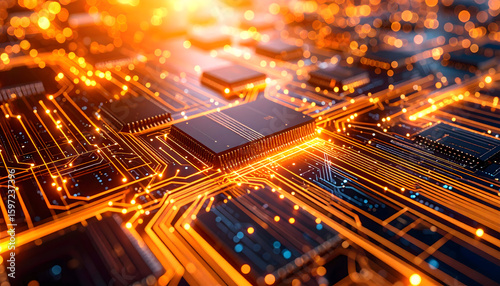 circuit, board, microchip, technology, electronic, computer, processor, digital, datum, connection, network, communication, abstract, design, pattern, structure, detail, closeup, illuminated, glowing, orange, line, light, bright, futuristic, modern, innovation, development, science, engineering, hardware, software, system, processing, information, energy, power, grid, complex, intricate, macro, perspective, sharpened, blur, background, dark, blue, dot, spot