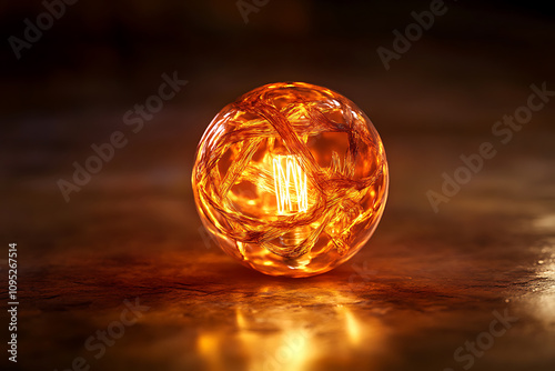 light, bulb, glowing, sphere, glasses, copper, wire, design, modern, decor, home, warm, illumination, ambient, artistic, aesthetic, intricate, detail, texture, orange, gold, lighting, bright, art