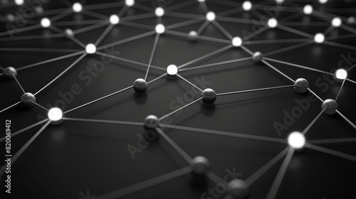 Illuminated Corporate Network Structure with Glowing Nodes on Dark Background - Abstract Digital Art Representing Communication and Hierarchy in a Modern Organization