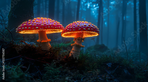 Illuminated fungi a night photography journey through enchanted forests. Biotech Fungi. Illustration